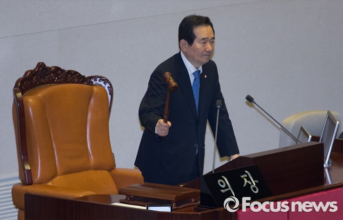 (서울=포커스뉴스) 27일 오후 서울 여의도 국회에서 열린 344회 국회(임시회) 3차 본회의에 참석한 정세균 국회의장이 안건 의결을 하고 있다.