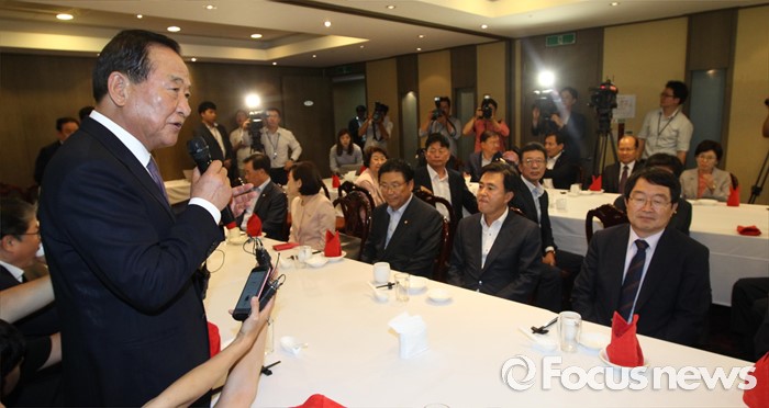 (서울=포커스뉴스) 서청원 새누리당 의원이 27일 오후 서울 영등포구 여의도 한 중식당에서 당 소속 의원 50여명을 초청해 친박(친박근혜)계 만찬 회동을 하고 있다.