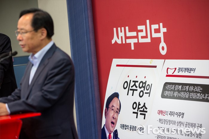 (서울=포커스뉴스) 새누리당 전당대회 당대표 선거에 출마한 이주영 새누리당 의원이 28일 오전 서울 여의도 새누리당사에서 정책공약 발표를 하고 있다.