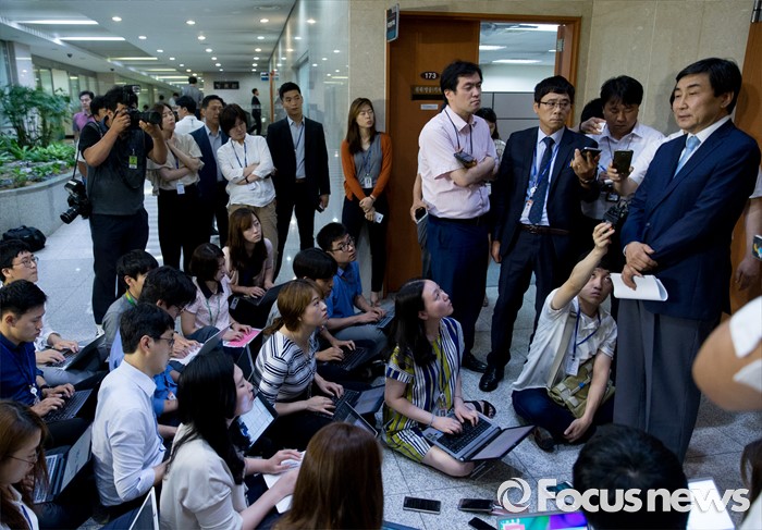 | △ 취재진 질문 답하는 이종걸 의원 |