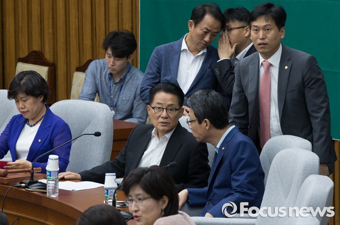 (서울=포커스뉴스) 28일 오후 서울 여의도 국회에서 열린 국민의당 비공개 의원총회에 참석한 박지원 비상대책위원장과 김성식 정책위의장 등이 논의하고 있다. 검찰은 이날 김수민, 박선숙, 박준영 의원에 대한 영장 재청구를 신청했다.