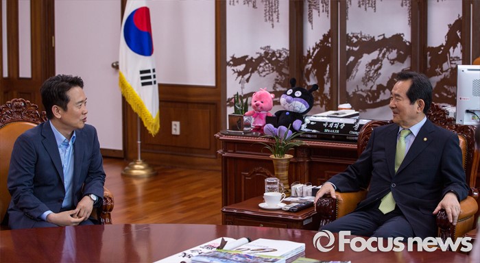 (서울=포커스뉴스) 정세균(오른쪽) 국회의장과 남경필 경기도지사가 28일 오후 서울 여의도 국회 의장접견실에서 회동하고 있다.