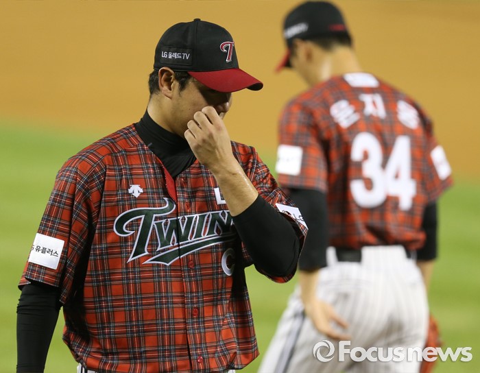 △ 교체돼 마운드 내려가는 LG 류제국