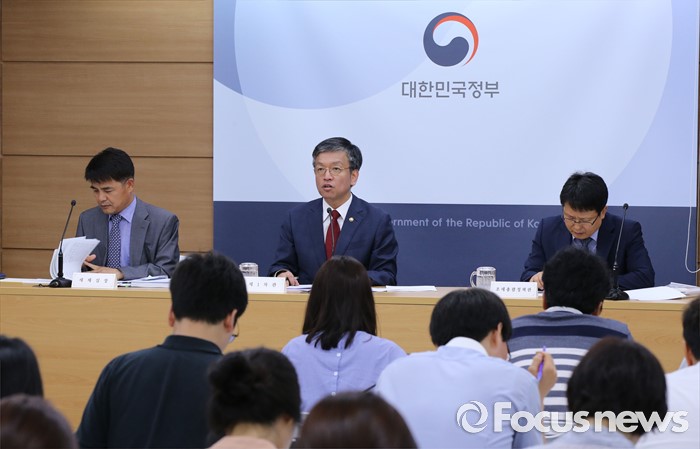 (세종=포커스뉴스) 최상목 기획재정부 제1차관이 지난 25일 오후 세종시정부세종청사 기재부 브리핑실에서 2016년 세법개정안 브리핑을 하고 있다. 왼쪽부터 최영록 세제실장, 최 차관, 안택순 조세총괄정책관.