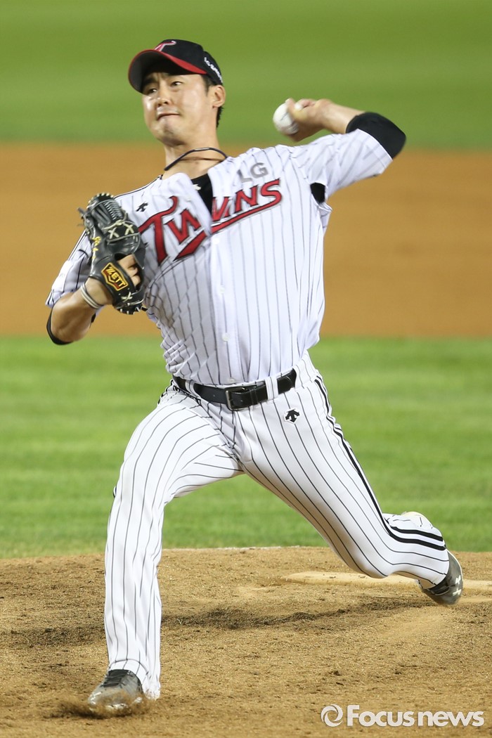 (서울=포커스뉴스) 28일 오후 서울 잠실구장에서 열린 2016 타이어뱅크 KBO리그 롯데-LG 경기에서 7회초 LG 진해수가 등판해 투구하고 있다.