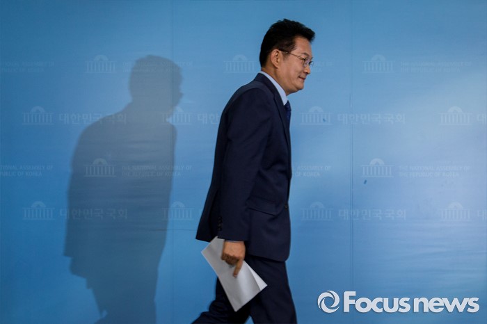 (서울=포커스뉴스) 더불어민주당 전당대회 당대표에 출마한 송영길 더불어민주당 의원이 4일 오전 서울 여의도 국회에서 공약발표를 하기 위해 기자회견장으로 들어서고 있다.