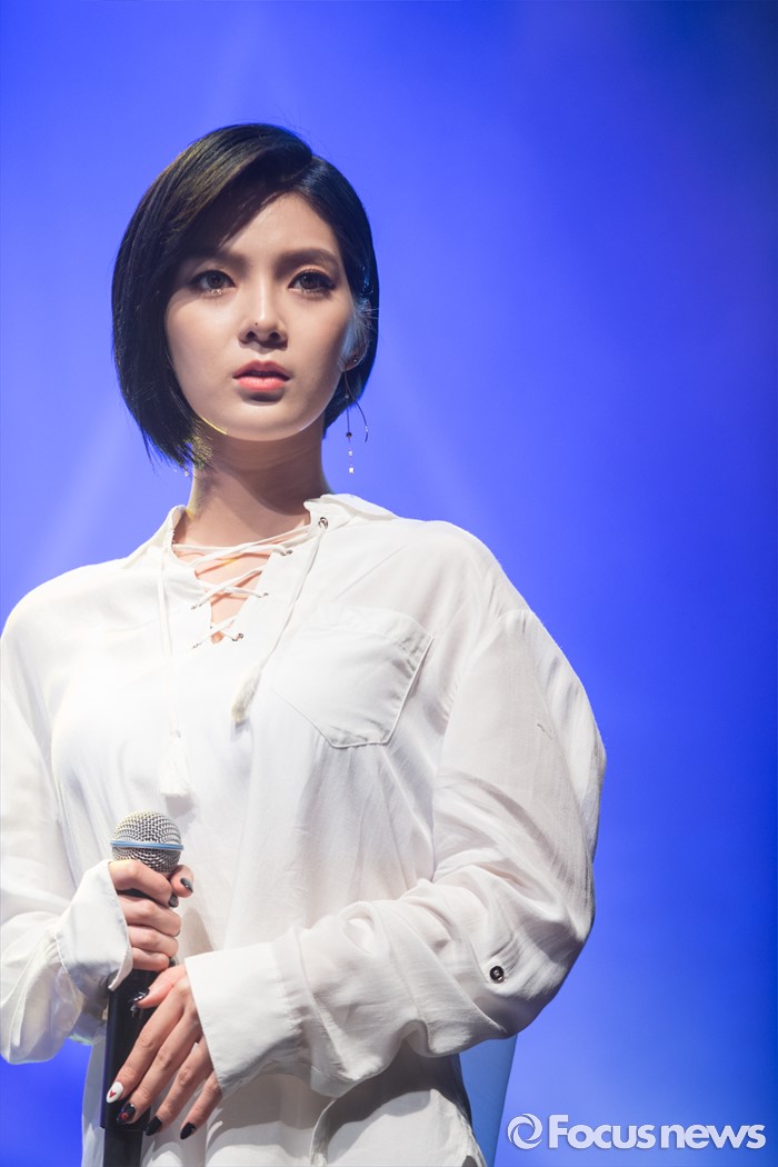 (서울=포커스뉴스) 4일 오전 서울 도봉구 플랫폼창동61에서 열린 걸그룹 나인뮤지스A의 싱글앨범 'MUSES DIARY' 발표 쇼케이스에 참석한 멤버 소진이 무대를 선보이고 있다.