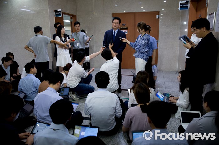| △ 취재진 앞에 선 송영길 |