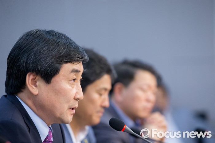 (서울=포커스뉴스) 1일 오후 서울 여의도 국회 의원회관에서 열린 더불어민주당 자치분권민주지도자회의 당대표 후보자 초청 토론회에 참석한 이종걸 의원이 모두발언을 하고 있다.