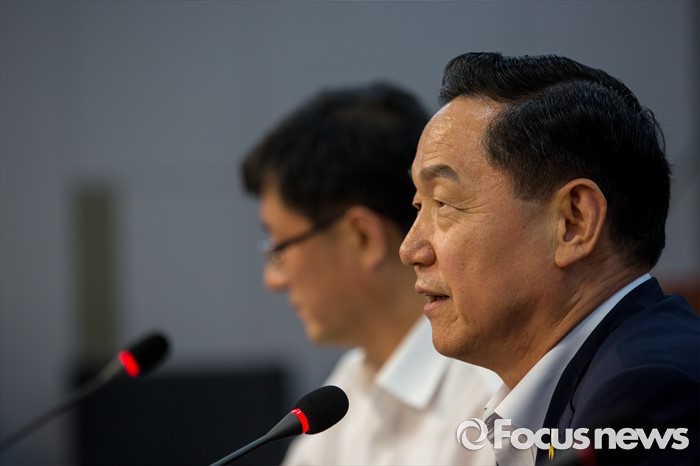 (서울=포커스뉴스) 더불어민주당 전당대회 당대표 출마에 나선 김상곤 후보가 1일 오후 서울 여의도 국회의원회관에서 열린 '전국자치분권민주지도자회의 당대표 후보자 초청 토론회'에 참석해 인사말 하고 있다.