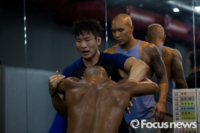 (서울=포커스뉴스) 오는 21일(한국시각) 미국 라스베이거스 T-모바일 아레나에서 개최되는 UFC-202에 출전해 러시아 출신 술탄 알리예프를 상대로 웰터급 경기가 예정된 임현규가 3일 오후 서울 서대문구 TAP복싱 & 레슬링에서 레슬링 훈련 하고 있다.