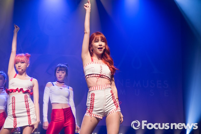 (서울=포커스뉴스) 4일 오전 서울 도봉구 플랫폼창동61에서 열린 걸그룹 나인뮤지스A의 싱글앨범 'MUSES DIARY' 발표 쇼케이스에 참석한 멤버들이 무대를 선보이고 있다.