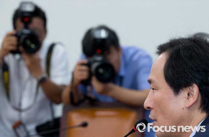 (서울=포커스뉴스) 4일 오전 서울 여의도 국회에서 열린 더불어민주당 사드대책위원회의에 참석한 우상호 원내대표가 모두발언을 하고 있다.