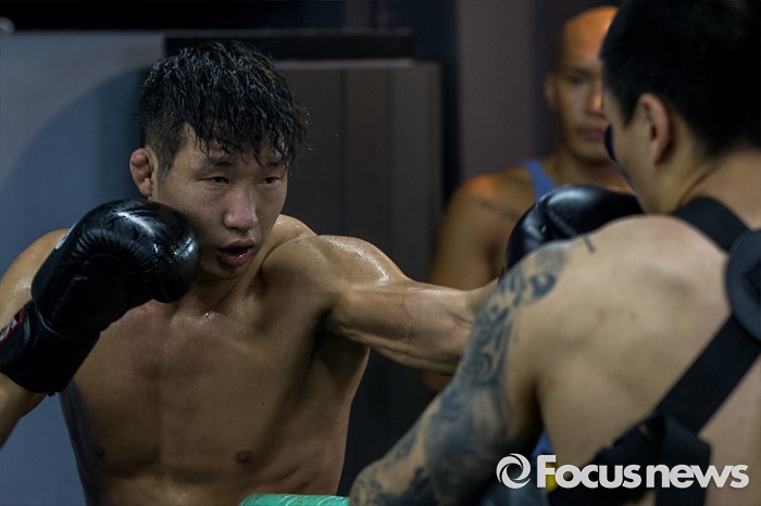 (서울=포커스뉴스) 오는 21일(한국시각) 미국 라스베이거스 T-모바일 아레나에서 개최되는 UFC-202에 출전해 러시아 출신 술탄 알리예프를 상대로 웰터급 경기가 예정된 임현규가 3일 오후 서울 서대문구 TAP복싱 & 레슬링에서 훈련 하고 있다.