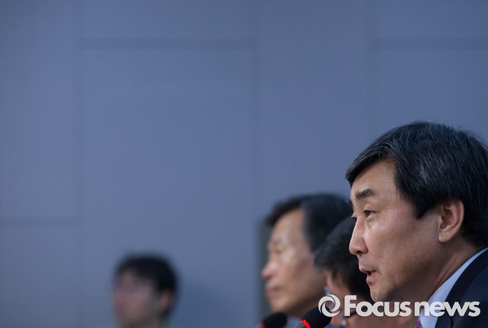 (서울=포커스뉴스) 1일 오후 서울 여의도 국회 의원회관에서 열린 더불어민주당 자치분권민주지도자회의 당대표 후보자 초청 토론회에 참석한 이종걸 의원이 모두발언을 하고 있다.