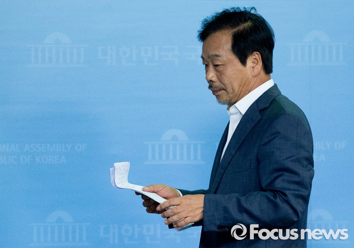 (서울=포커스뉴스) 사드배치 예정지 경북 성주군이 지역구인 이완영 새누리당 의원이 4일 오후 서울 여의도 국회 정론관에서 박근혜 대통령과의 면담 결과 브리핑을 마친 뒤 나서고 있다.