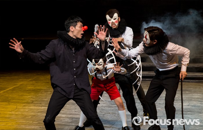 (서울=포커스뉴스) 4일 오후 서울 중구 충무아트센터에서 열린 연극 '햄릿-더 플레이' 언론시연회에 참석한 배우들이 열연하고 있다.