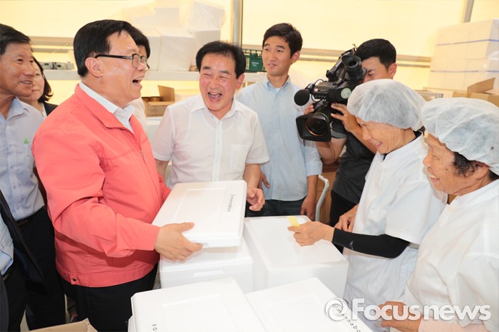(진천=포커스뉴스) 이동필 농림축산식품부 장관이 4일 충북 진천군 '만나 CEA' 농업회사법인을 찾아 ICT와 바이오기술을 결합한 식물공장 채소류 재배시설 등 스마트 팜 확산 사례를 현장 점검하고 있다. <사진제공=농림축산식품부>