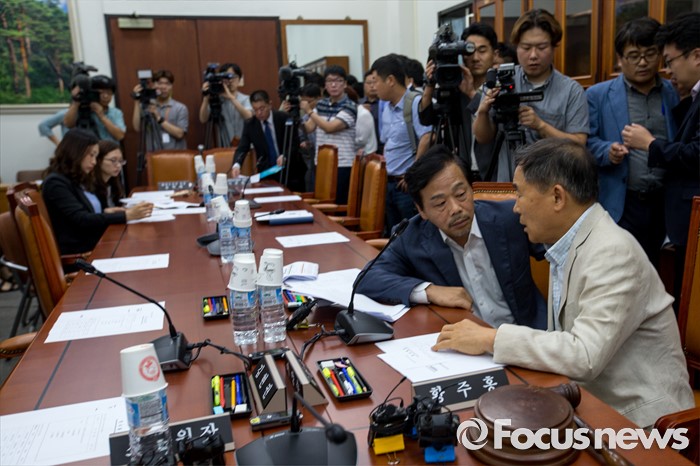 (서울=포커스뉴스) 국회 농해수위 부정청탁금지법 소위 위원장인 황주홍(오른쪽) 국민의당 의원과 이완영(오른쪽 두 번째) 새누리당 의원이 4일 오후 서울 여의도 국회에서 열린 농림축산식품해양수산위원회 부정청탁금지법 관련 소위에 참석해 대화하고 있다.