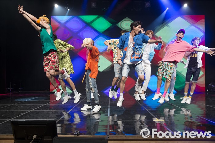 (서울=포커스뉴스) 4일 오후 서울 강남구 일지아트홀에서 열린 아이돌 그룹 업텐션의 미니앨범 'Summer go'발표 쇼케이스에 참석한 멤버들이 포토타임을 갖고 있다.