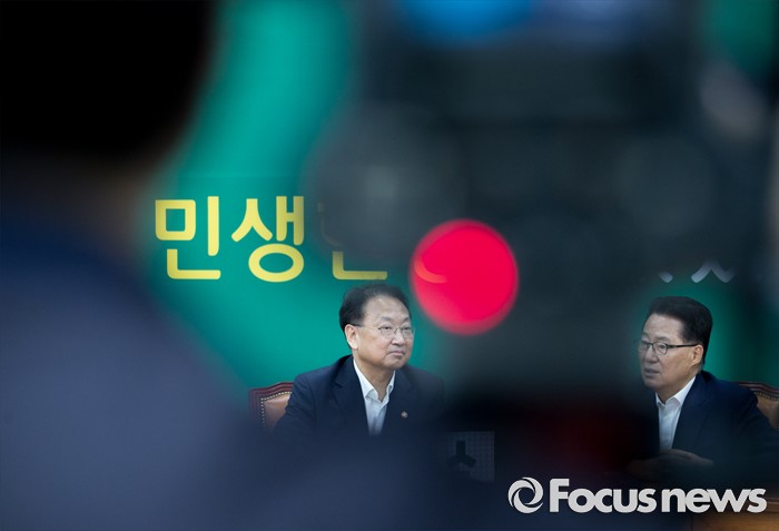 (서울=포커스뉴스) 5일 오전 서울 여의도 국회에서 추경 예산 등 협조를 위해 방문한 유일호(왼쪽) 경제부총리 겸 기획재정부 장관과 박지원 국민의당 비상대책위원장이 면담을 하고 있다.