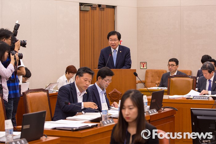 (서울=포커스뉴스) 김영석 해양수산부 장관 5일 오전 서울 여의도 국회에서 열린 국회 농림축산식품해양수산위원회 전체회의에 참석해 추가경정예산 편성관련 보고를 하고 있다.