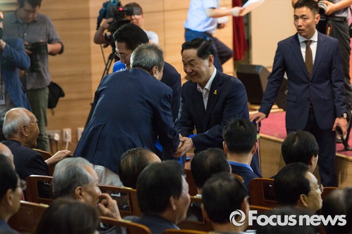 (서울=포커스뉴스) 김상곤 더불어민주당 당대표 후보가 5일 오후 서울 여의도 국회의원회관에서 열린 '전당대회 당대표 예비경선(컷오프)'에 참석해 인사 하고 있다.