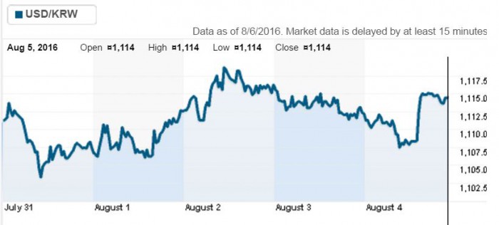 현재 역외 외환시장에서 원·달러 환율은 지난 주(5일) 종가 1110.4원보다 4원 정도 상승한 1114원 선에서 거래되고 있다.