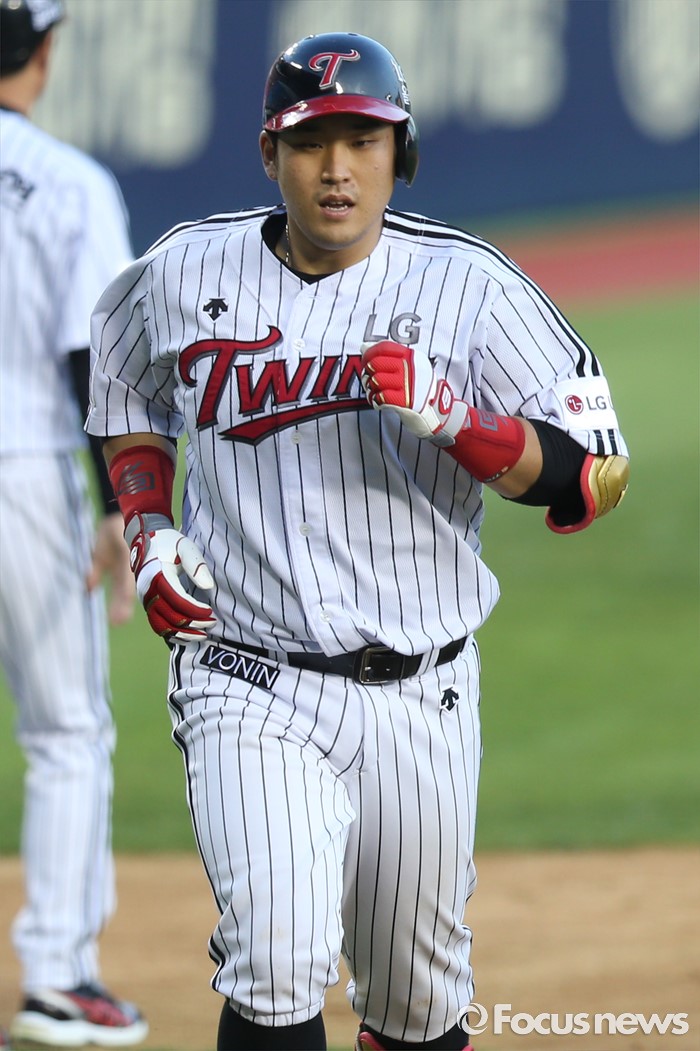 (서울=포커스뉴스) 5일 서울 잠실구장에서 열린 2016 프로야구 kt-LG 경기 3회말 LG 선두타자 유강남이 좌월 솔로 홈런을 치고 홈인하고 있다.