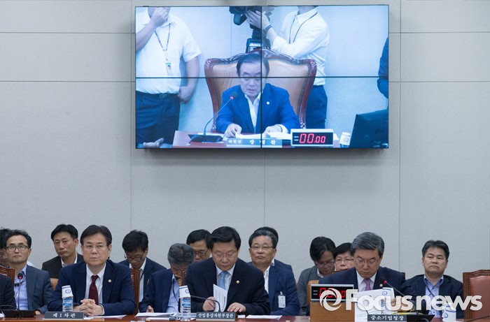 (서울=포커스뉴스) 8일 오후 서울 여의도 국회에서 열린 산업통상자원위원회 전체회의에 참석한 주형환(가운데) 산업통상자원부 장관, 이관섭(왼쪽) 1차관, 주영섭 중소기업청장이 장병완 위원장의 발언을 듣고 있다.