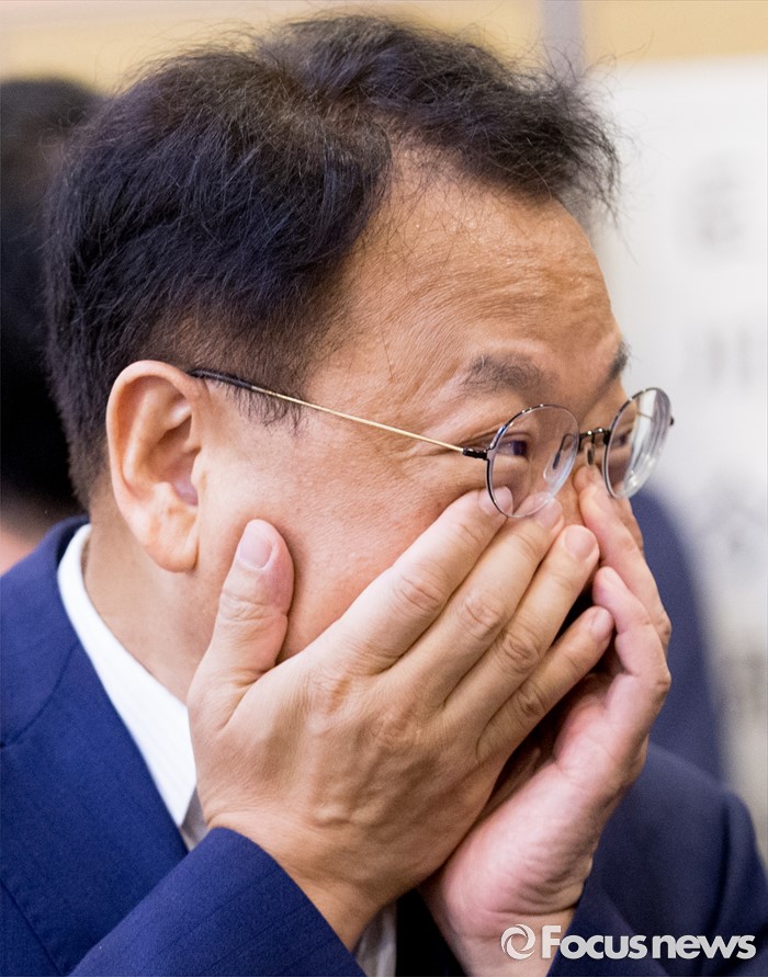 (서울=포커스뉴스) 9일 오전 서울 여의도 국회 귀빈식당에서 열린 2017년도 예산 당정협의에 참석한 유일호 경제부총리 겸 기획재정부 장관이 얼굴을 만지고 있다.