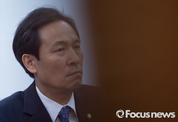 (서울=포커스뉴스) 9일 오전 서울 여의도 국회에서 열린 더불어민주당 원내대책회의에 참석한 우상호 원내대표가 생각에 잠겨 있다.