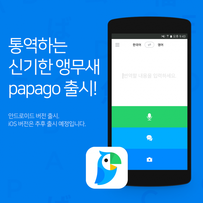 9일 자동통역 앱 '파파고'(papago) 출시