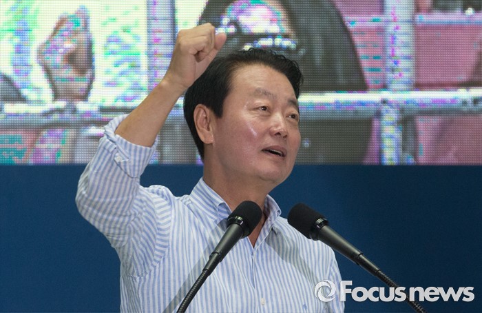 (서울=포커스뉴스) 9일 오후 서울 송파구 잠실실내체육관에서 열린 새누리당 4차 전당대회에 참석한 한선교 당대표 후보가 정견발표를 하고 있다.