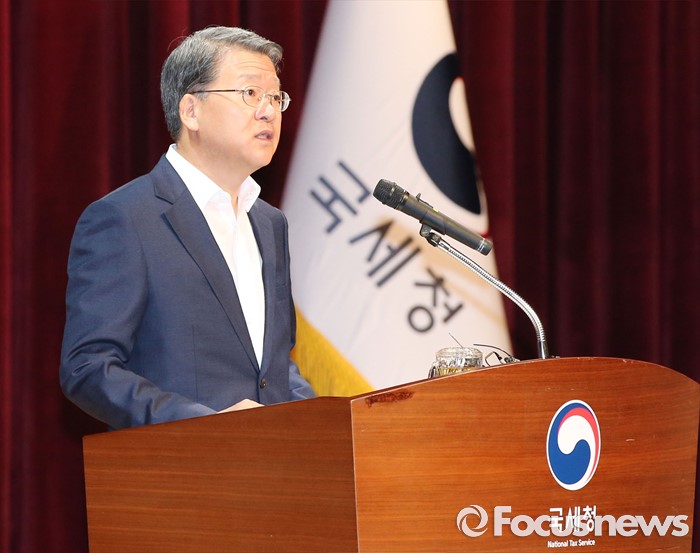 (세종=포커스뉴스) 임환수 국세청장이 10일 오전 세종시 정부세종2청사 국세청에서 열린 전국세무관서장회의에 인사말을하고 있다.