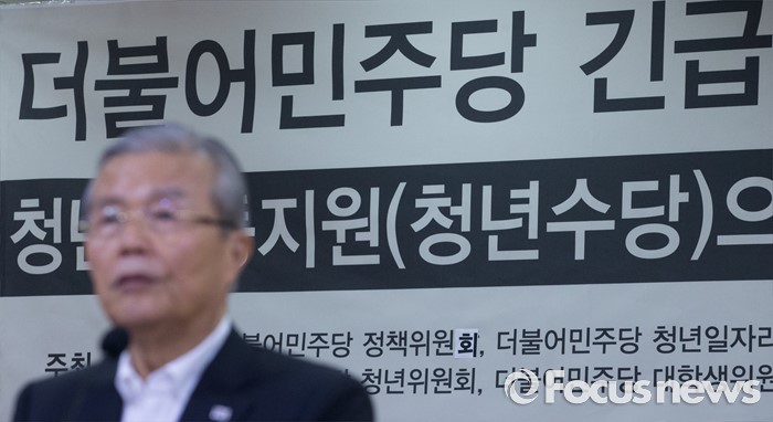 (서울=포커스뉴스) 10일 오전 서울 여의도 국회 의원회관에서 열린 더불어민주당 청년지원사업(청년수당)으로 본 청년 구직지원 및 구직안전망 긴급토론회에 참석한 김종인 비대위 대표가 축사를 하고 있다.