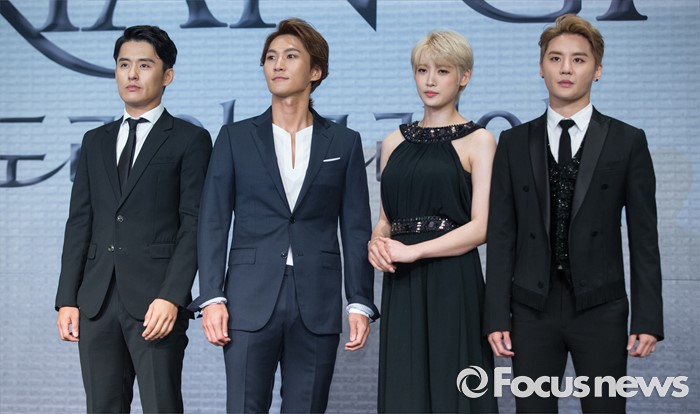 뮤지컬 '도리안 그레이'는 9월3일부터 10월 29일까지 성남아트센터 오페라하우스에서 공연된다. 2차 티켓 오픈은 18일 오후 2시 인터파크, 하나티켓, 예스 24에서 실시되며 관련 공지는 각 예매처의 예매 페이지를 통해 확인할 수 있다.(서울=포커스뉴스) 11일 오후 서울 종로구 포시즌스호텔 서울에서 열린 뮤지컬 '도리안 그레이' 제작발표회에 참석한 배우 최재웅(왼쪽부터), 박은태, 홍서영, 김준수가 포토타임을 갖고 있다. 2016.07.11 김유근 기자