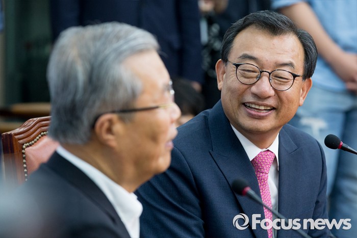 (서울=포커스뉴스) 10일 오후 서울 여의도 국회에서 이정현(오른쪽) 새누리당 신임 대표가 김종인 더불어민주당 비대위 대표와 만나 면담을 하고 있다.