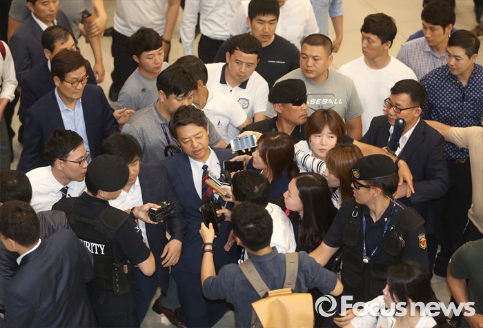 경찰들이 게이트 주변으로 기자들의 접근은 허용했으나 시위대는 막아서자 이를 항의하는 소란이 벌어지기도 했다. 일부 보수단체 회원은 "왜 매국노들을 지켜주느냐"라는 등의 강경 발언을 쏟아냈다.