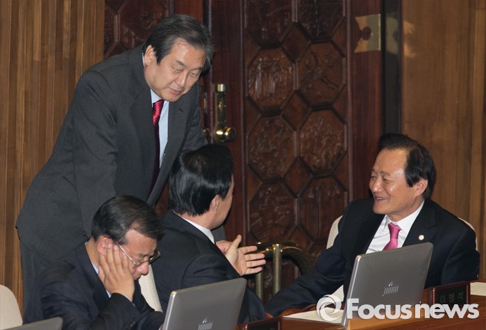 노 전 의원은 지난 4월 제20대 총선에서 낙마했다.4일 오후 서울 여의도 국회에서 339회 국회(임시회) 1차 본회의에 참석한 김무성(왼쪽) 새누리당 대표, 노철래(오른쪽) 의원과 '포스코 비리' 의혹을 받고 있는 이병석 의원이 대화하고 있다. 2016.02.04 박동욱 기자