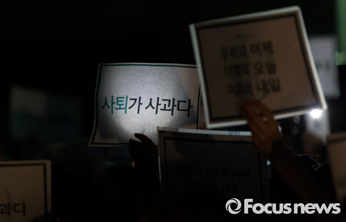 (서울=포커스뉴스) 10일 오후 서울 서대문구 이화여대에서 재학생 및 졸업생들이 최경희 총장의 사퇴를 요구하며 대규모 시위를 하고 있다.
