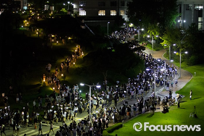 (서울=포커스뉴스) 10일 오후 서울 서대문구 이화여대에서 재학생 및 졸업생들이 최경희 총장의 사퇴를 요구하며 대규모 시위를 하고 있다.
