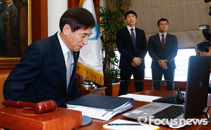 (서울=포커스뉴스) 11일 오전 서울 중구 한국은행에서 열린 제16차 금융통화위원회에 참석한 이주열 한국은행 총재가 자리에 앉고 있다.