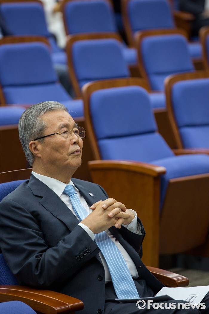 (서울=포커스뉴스) 김종인 더불어민주당 비상대책위 대표가 11일 오전 서울 여의도 국회에서 열린 의원총회에 참석해 모두발언을 마친 뒤 우상호 원내대표의 발언을 경청 하고 있다.