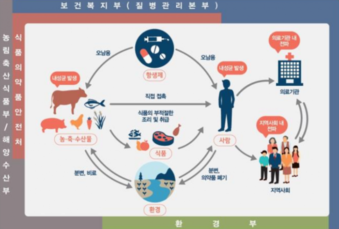 정부 관계자는 “오늘 발표된 대책을 차질 없이 추진하기 위해, 보건복지부 등 관계부처가 협업해 나갈 것”이라며 “과제별 세부행동계획 수립 및 정기적인 이행 점검을 통해 대책의 실효성을 높여나갈 예정”이라고 말했다.항생제 내성균 발생 및 전파 경로 <사진출처=보건복지부>