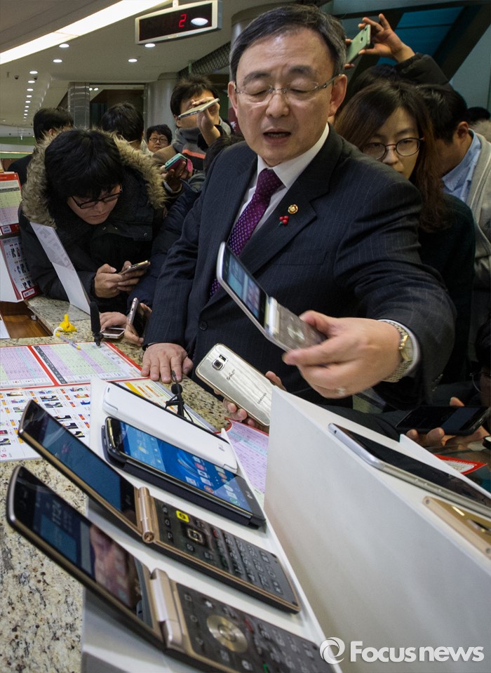 이번 평가에서 떨어진 3개 업체의 기존 고객에 대해서는 모바일 요금조회 서비스와 단순 문의사항 등에 대해 계속 서비스를 제공할 예정이다.(서울=포커스뉴스) 13일 오후 서울 중구 중앙우체국 알뜰폰 판매창구를 찾은 최성준 방송통신위원장이 알뜰폰을 살펴보고 있다.2016.01.13 양지웅 기자