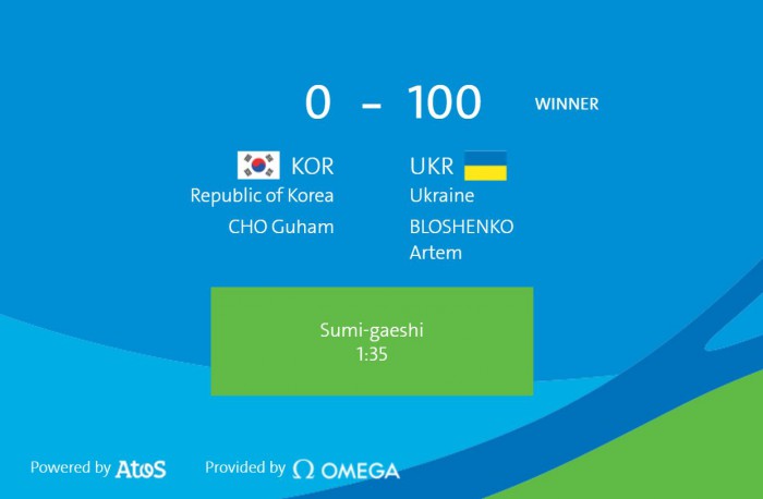 조구함은 앞서 열린 32강에서 세계랭킹 3위인 마틴 파첵(스웨덴)에 지도승을 거두며 파란을 일으키며 기대를 모았다. 조구함으로서는 이번 16강 패배가 더욱 아쉬움이 클 수밖에 없었다.남자 유도 -100kg급 16강전 결과. <사진출처=리우올림픽 공식 홈페이지>